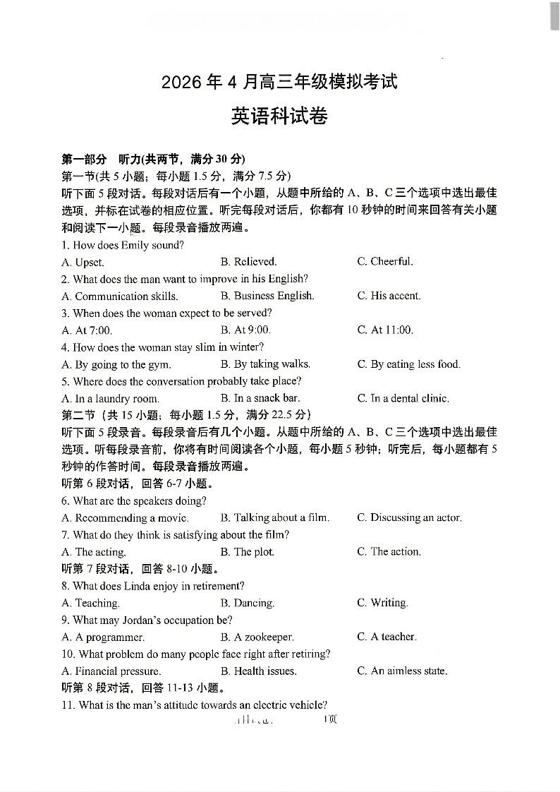 辽宁省实验中学2026年4月高考模拟考试 英语试题(含答案).pdf