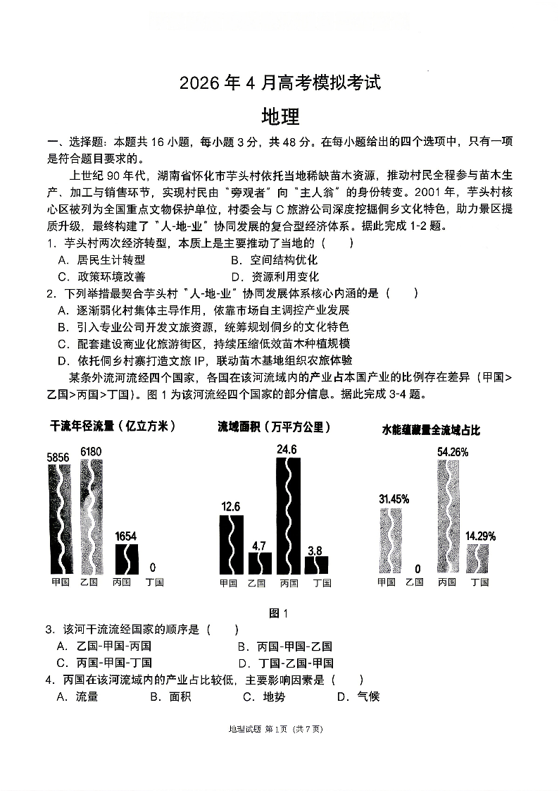 辽宁省实验中学2026年4月高考模拟考试 地理试题(含答案).pdf