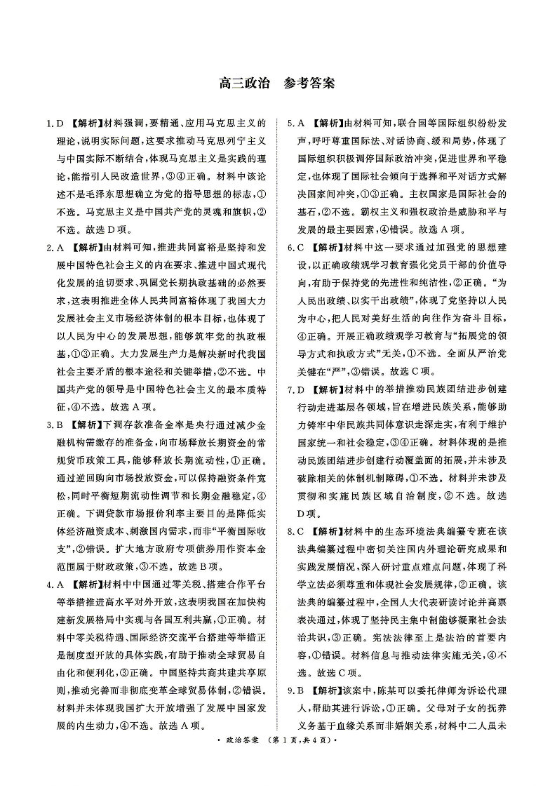 河南省青桐鸣2026届高三下学期4月质检 政治答案.pdf