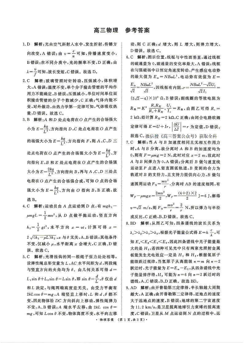 河南省青桐鸣2026届高三下学期4月质检 物理答案.pdf