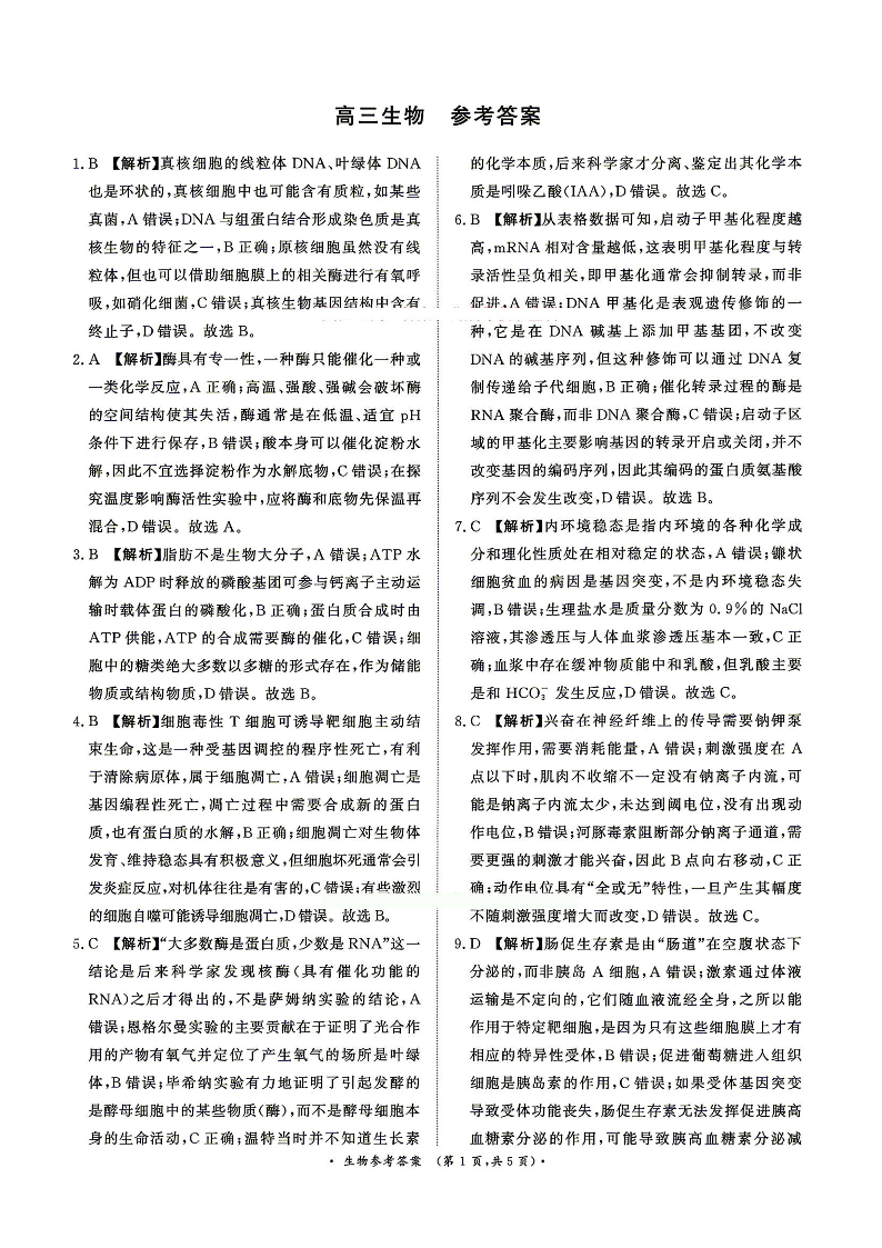 河南省青桐鸣2026届高三下学期4月质检 生物答案.pdf