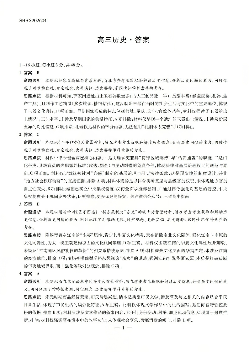 2026届高三4月顶尖计划(四)历史答案.pdf