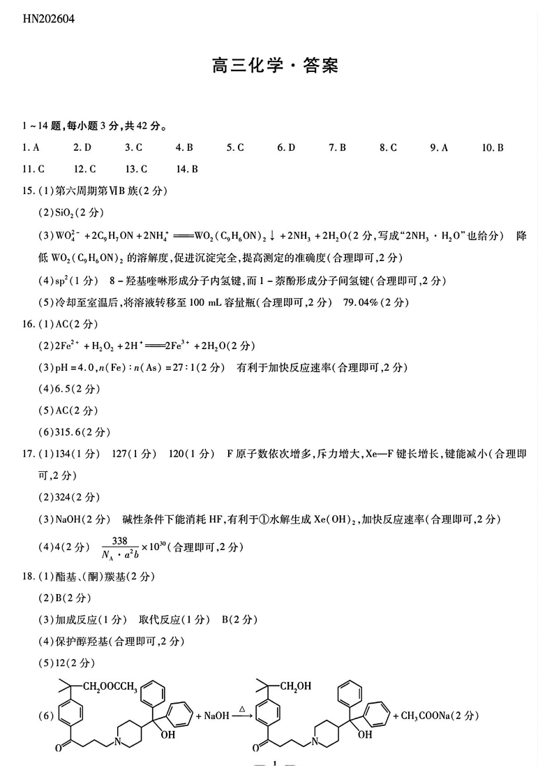 2026届高三4月顶尖计划(四)化学答案.pdf