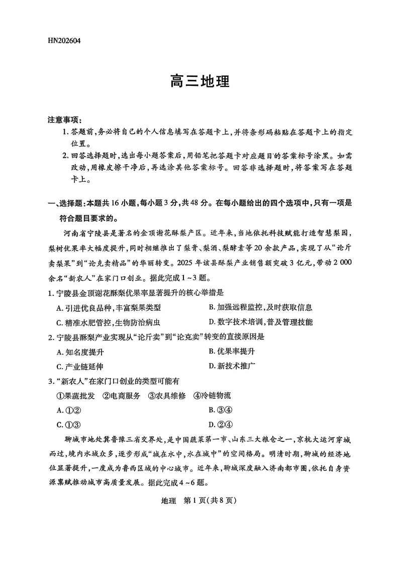 2026届高三4月顶尖计划(四)地理.pdf