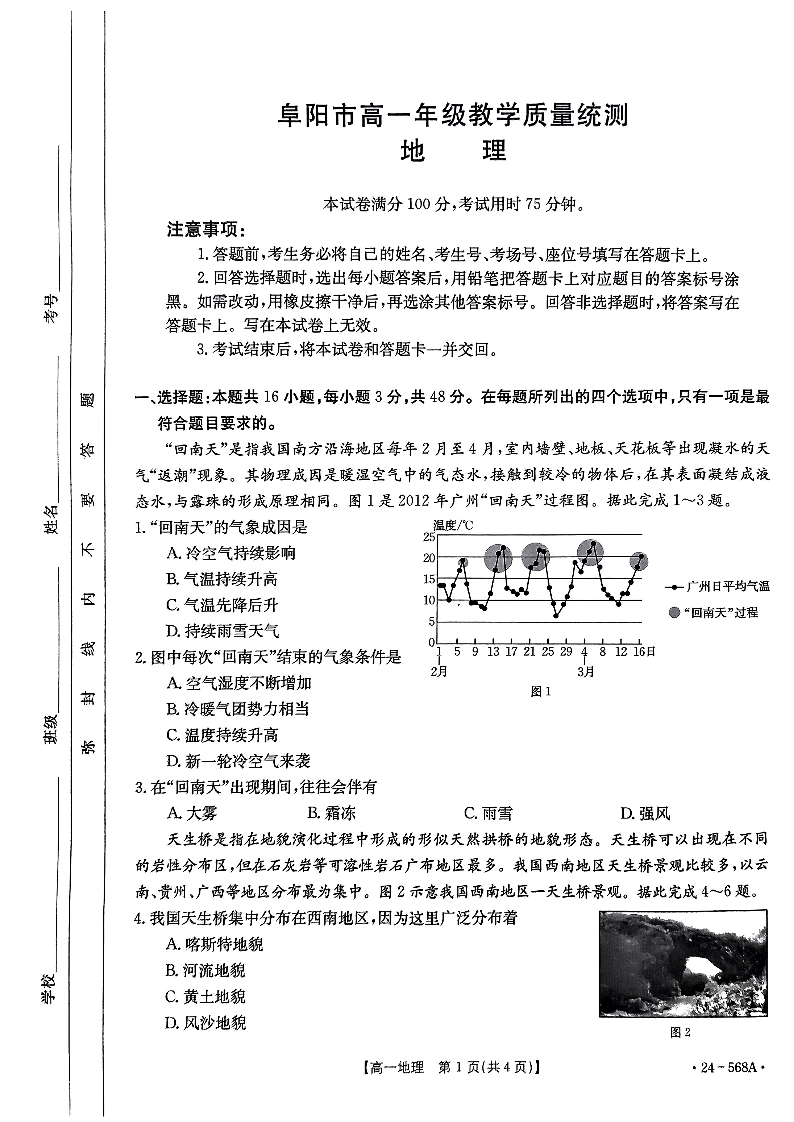安徽省阜阳市2023-2024学年高一下学期7月期末质量统测 地理