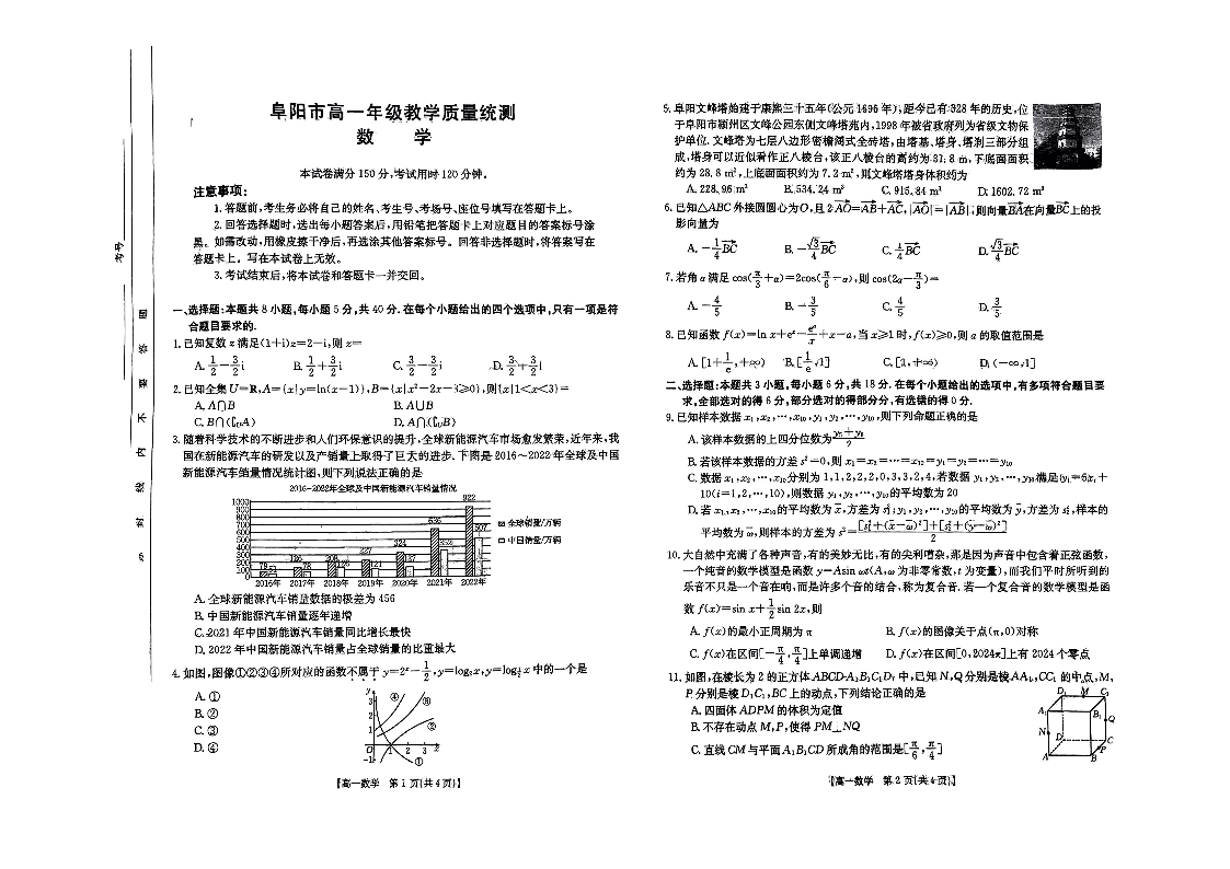 安徽省阜阳市2023-2024学年高一下学期7月期末质量统测 数学