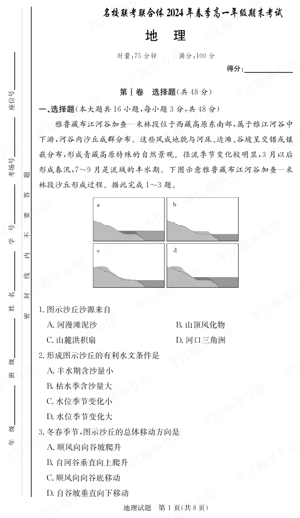 湖南省名校联考联合体2023-2024学年高一下学期期末考试 地理