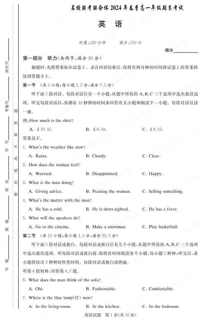 湖南省名校联考联合体2023-2024学年高一下学期期末考试 英语