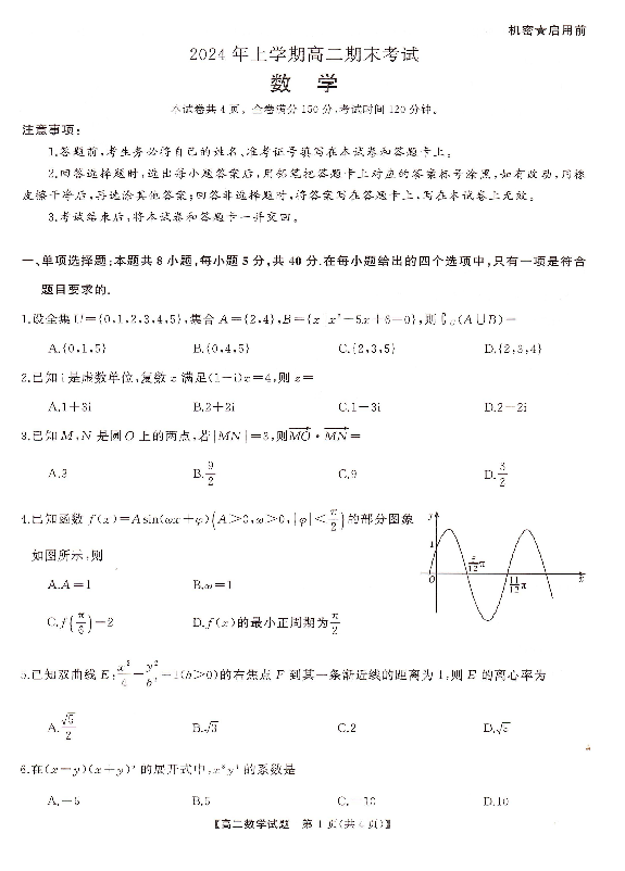 湖南省天壹大联考2023-2024年下学期高二期末联考 数学