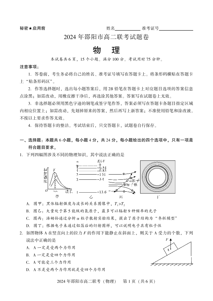 湖南省邵阳市2023-2024学年高二下学期7月期末 物理