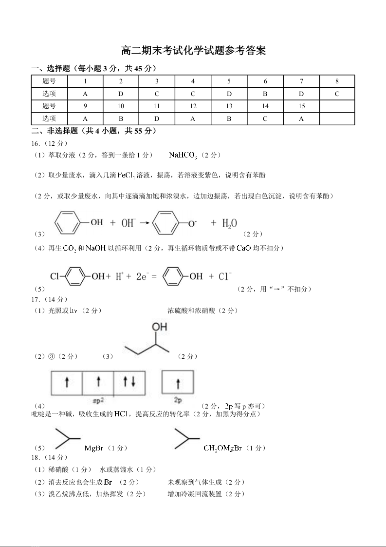 湖北省新高考联考协作体(八市)2023-2024学年高二下学期期末考试 化学答案