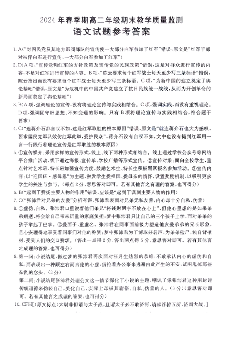 贵港2024年春季期高二年级期末教学质量监测 语文答案