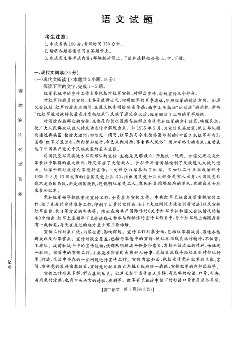 贵港2024年春季期高二年级期末教学质量监测 语文