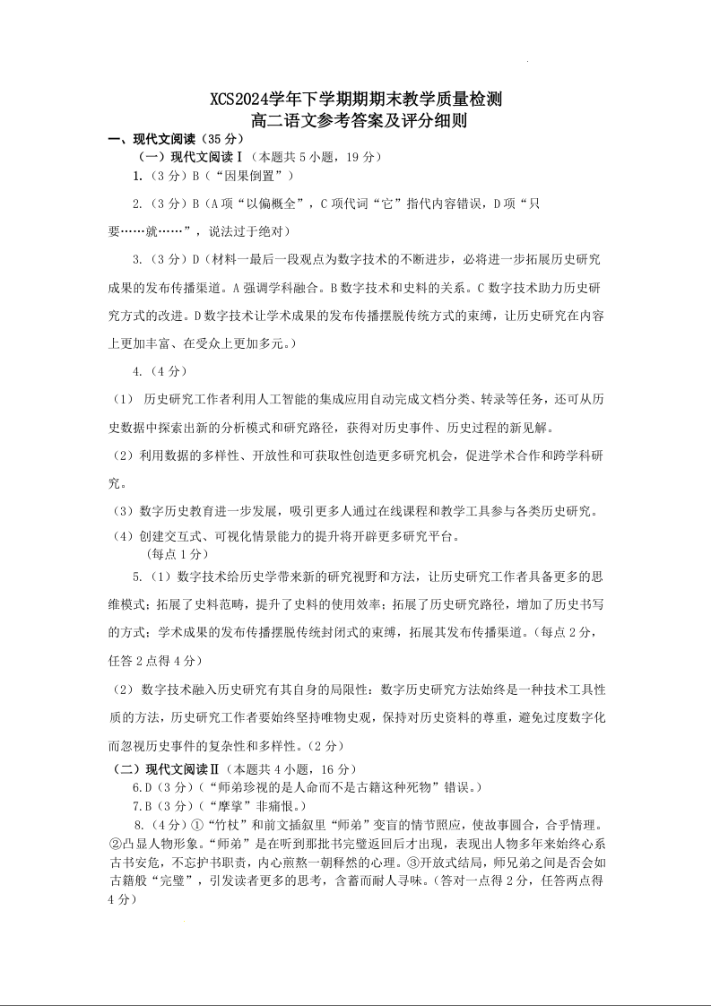 河南省许昌市2023-2024学年高二下学期7月期末教学质量检测 语文答案