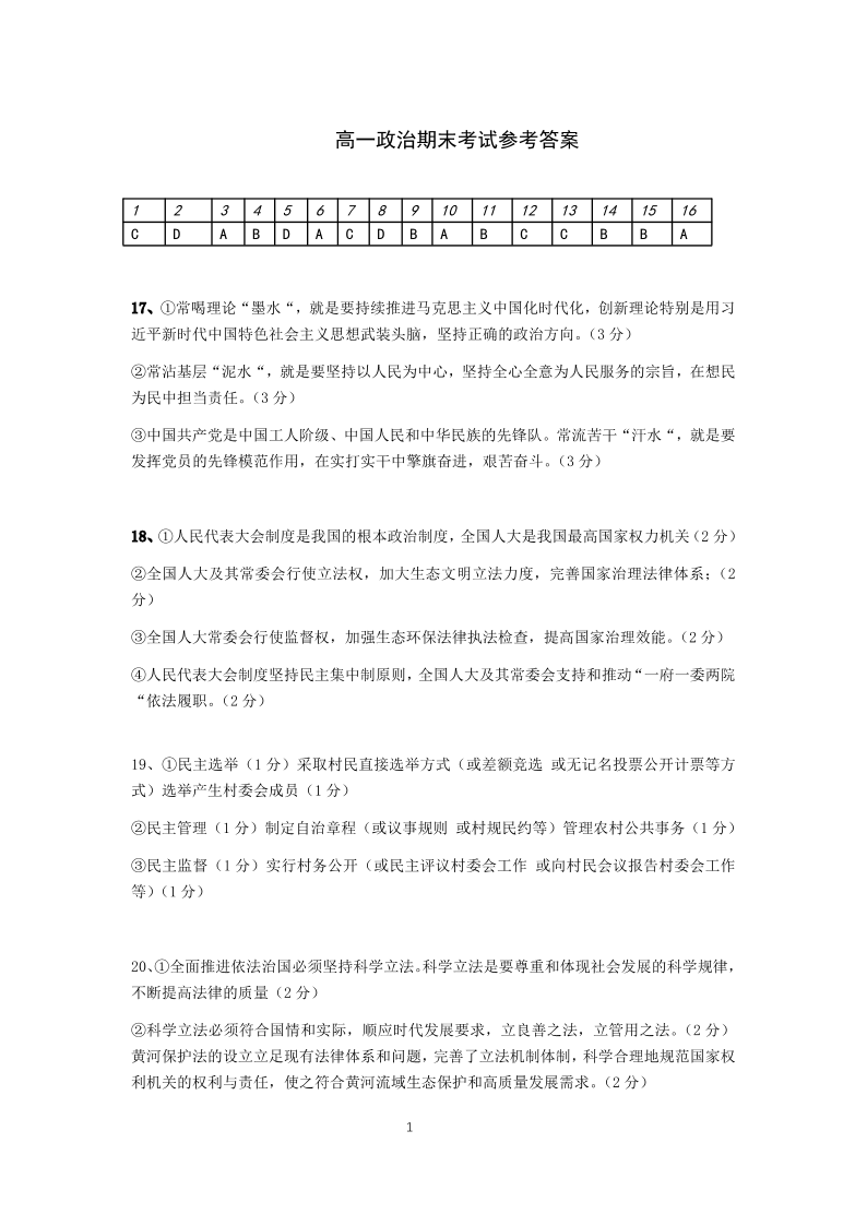 湖北省部分省级示范高中2023-2024学年高一下学期期末测试 政治答案