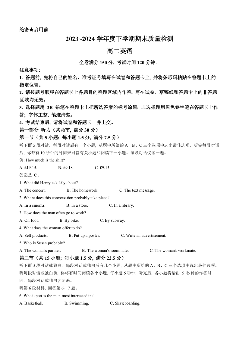 河南省金科新未来2023~2024学年度下学期期末质量检测 英语
