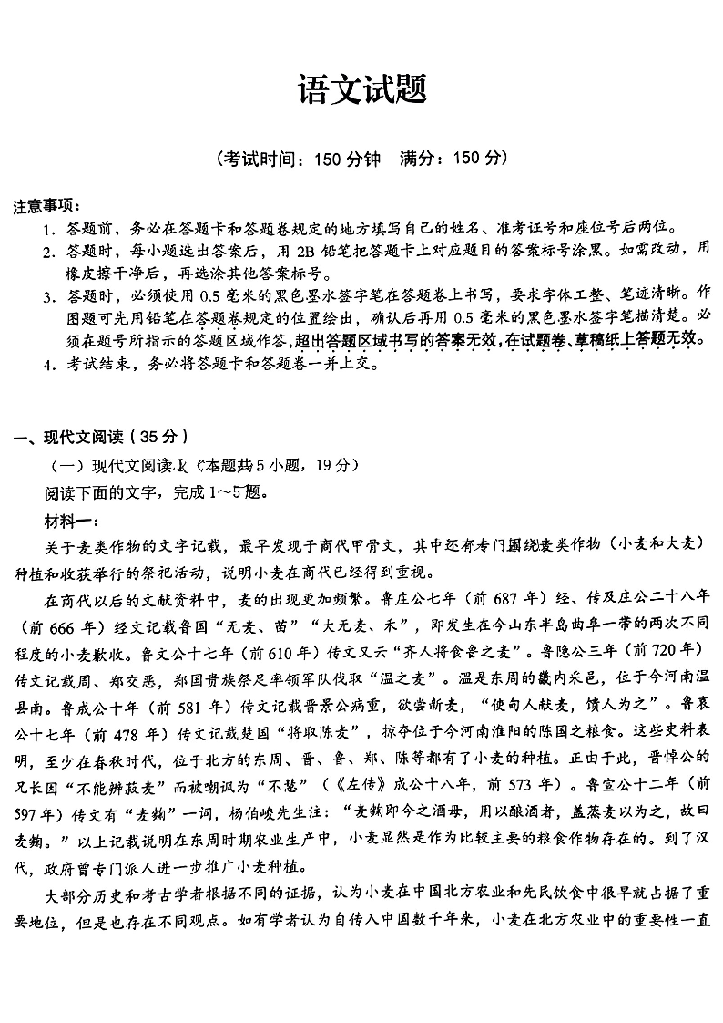 合肥一中2023-2024学年度高二期末 语文