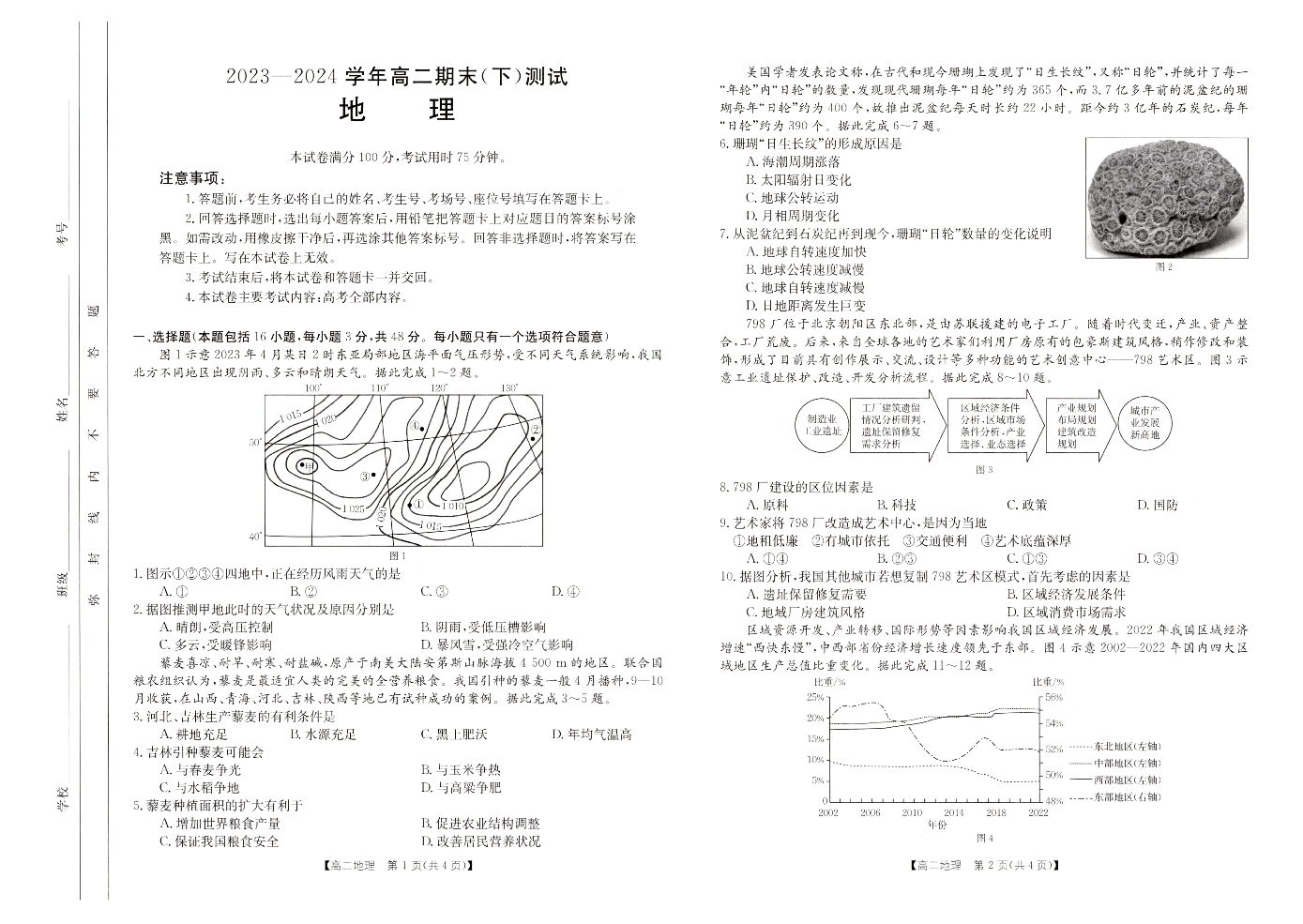 河南省新乡市2023-2024学年高二下学期期末考试 地理