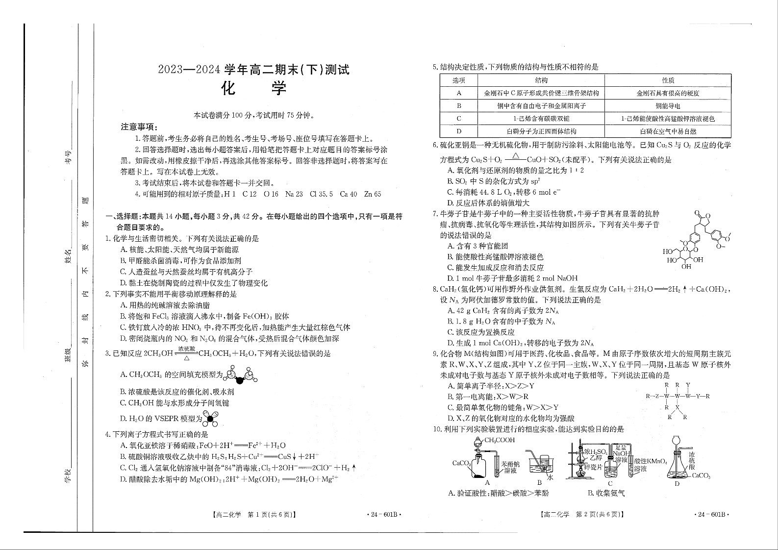 河南省新乡市2023-2024学年高二下学期期末考试 化学