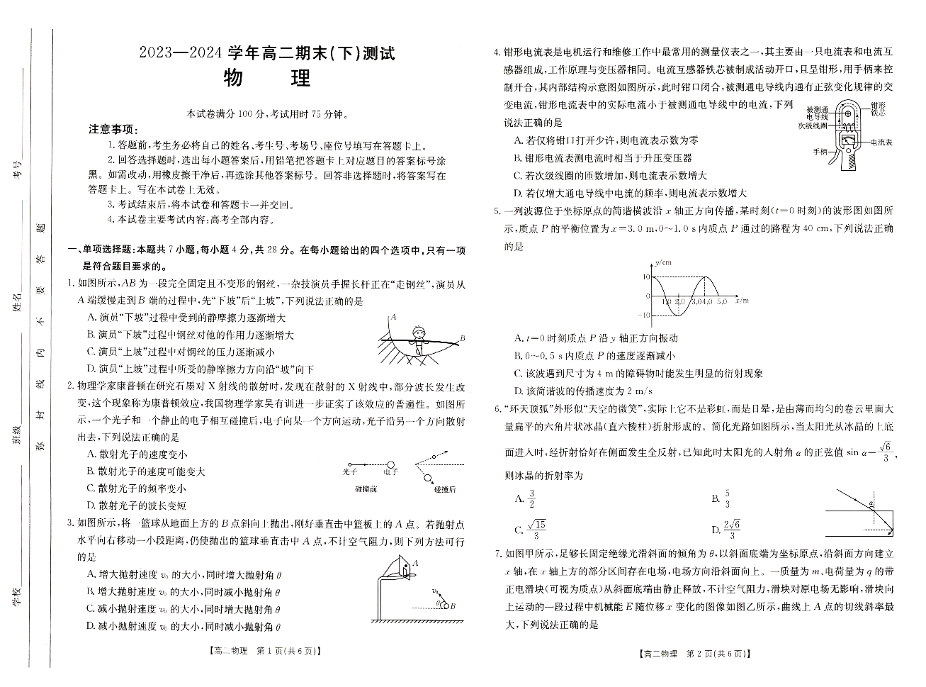 河南省新乡市2023-2024学年高二下学期期末考试 物理
