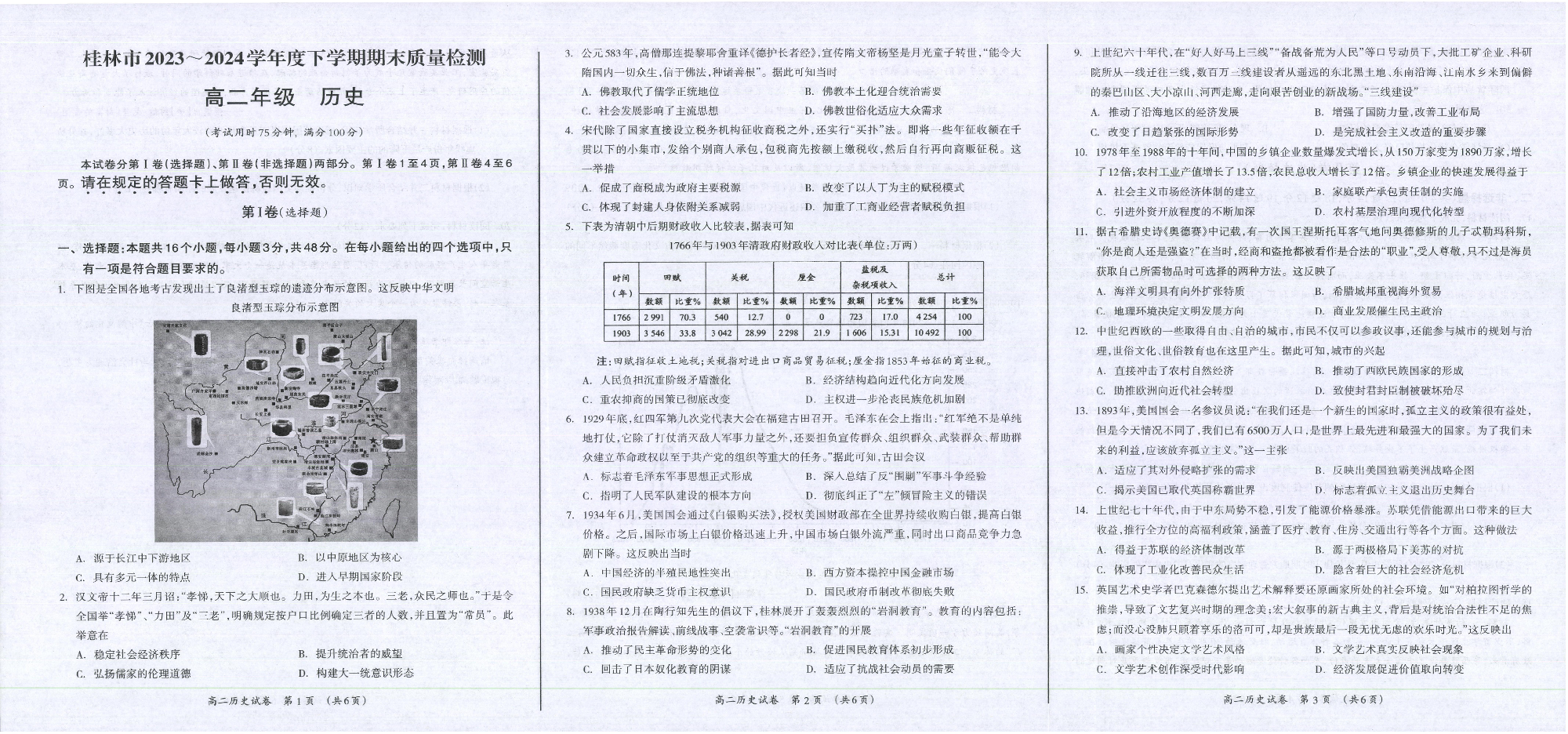 广西桂林市2023-2024学年高二下学期期末质量检测 历史