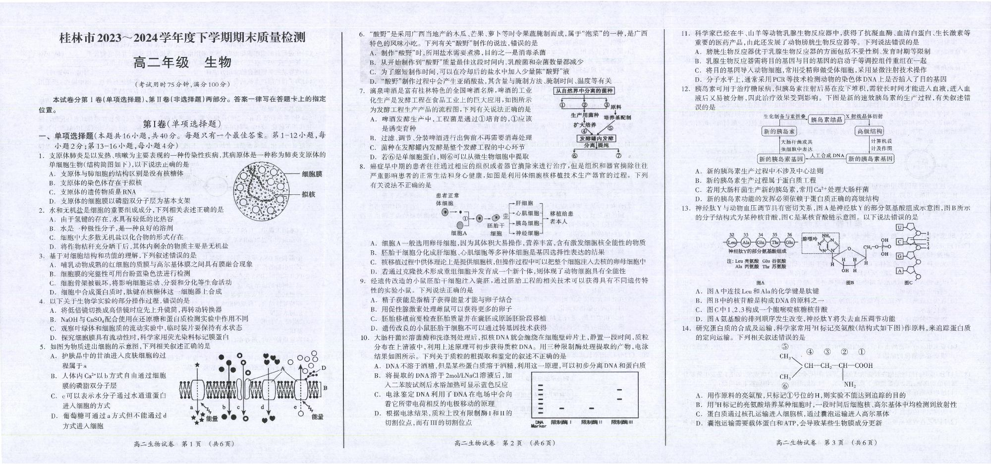 广西桂林市2023-2024学年高二下学期期末质量检测 生物