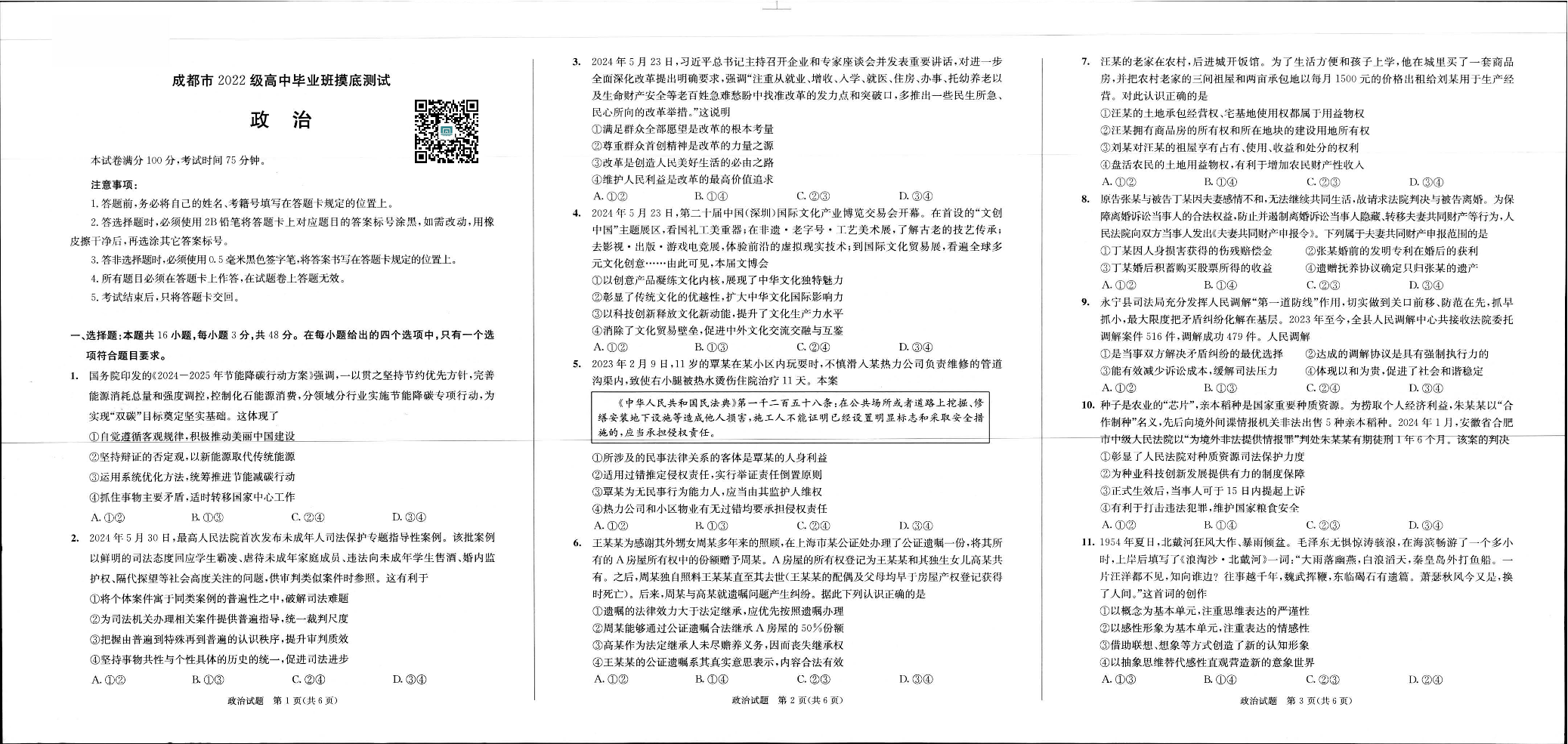 成都市2025届高三上学期毕业班摸底测试(零诊)政治