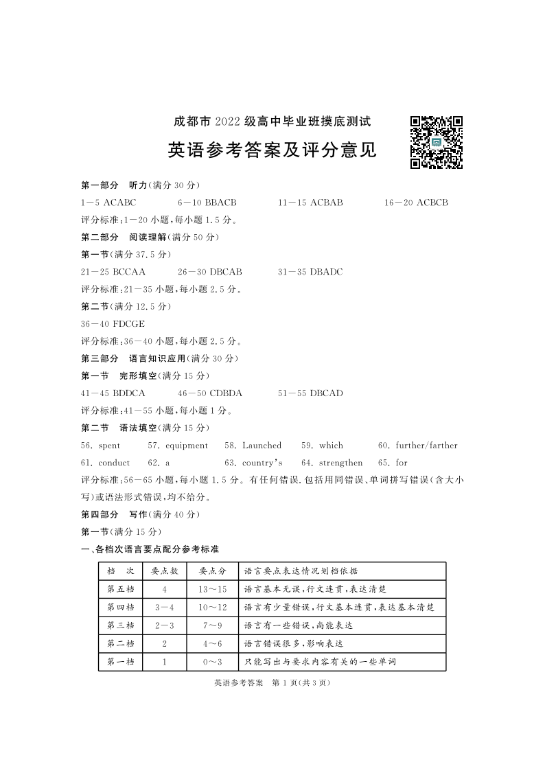 成都市2025届高三上学期毕业班摸底测试(零诊)英语答案