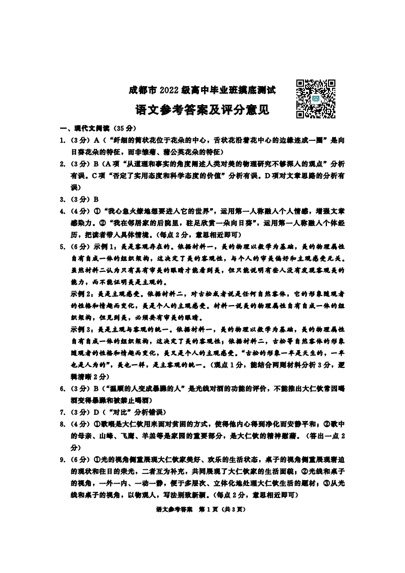成都市2025届高三上学期毕业班摸底测试(零诊)语文答案