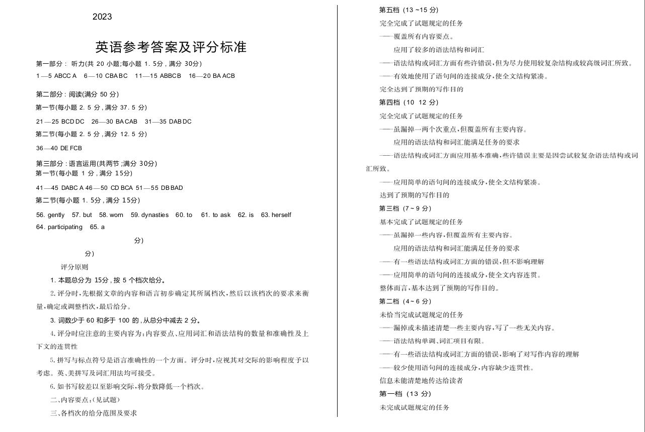 山东省枣庄市2023~2024学年高二教学质量检测 英语答案