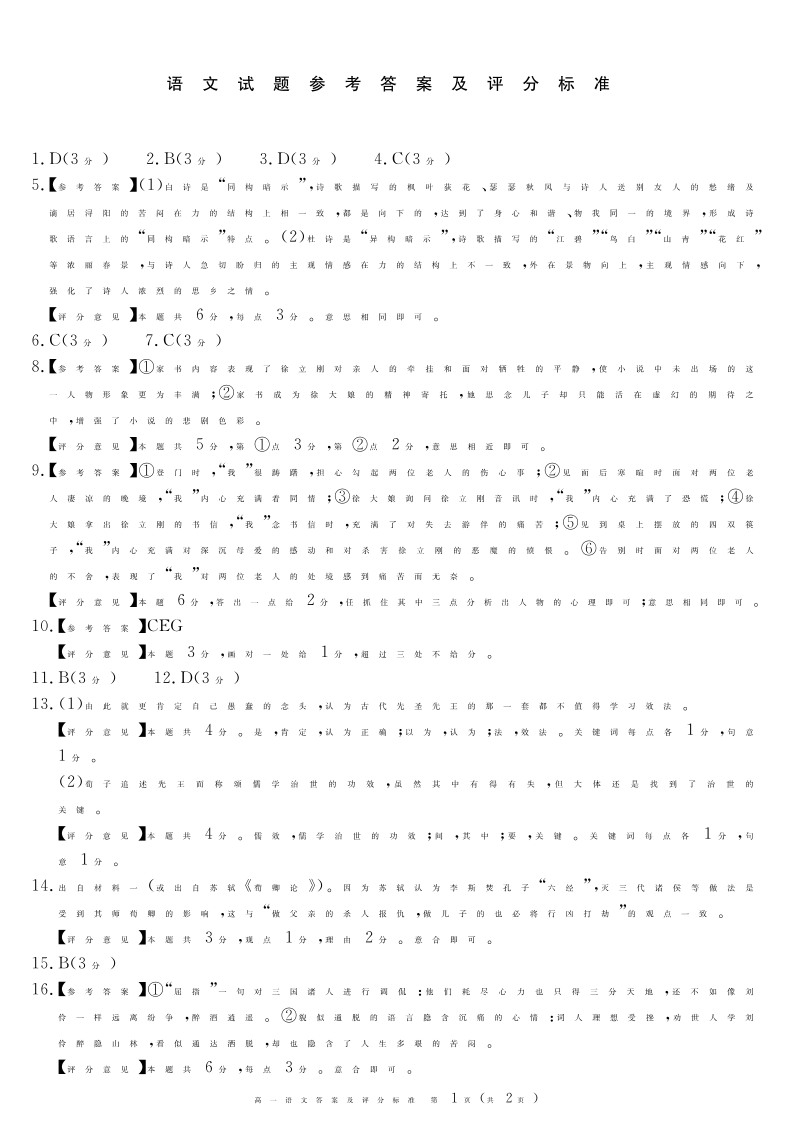 四川省九市2023-2024学年度高一第二学期期期末质量检测联考 语文答案