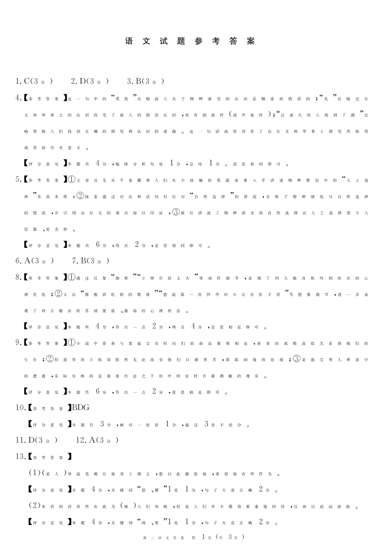 四川省九市2023-2024学年度高二第二学期期期末质量检测联考 语文答案