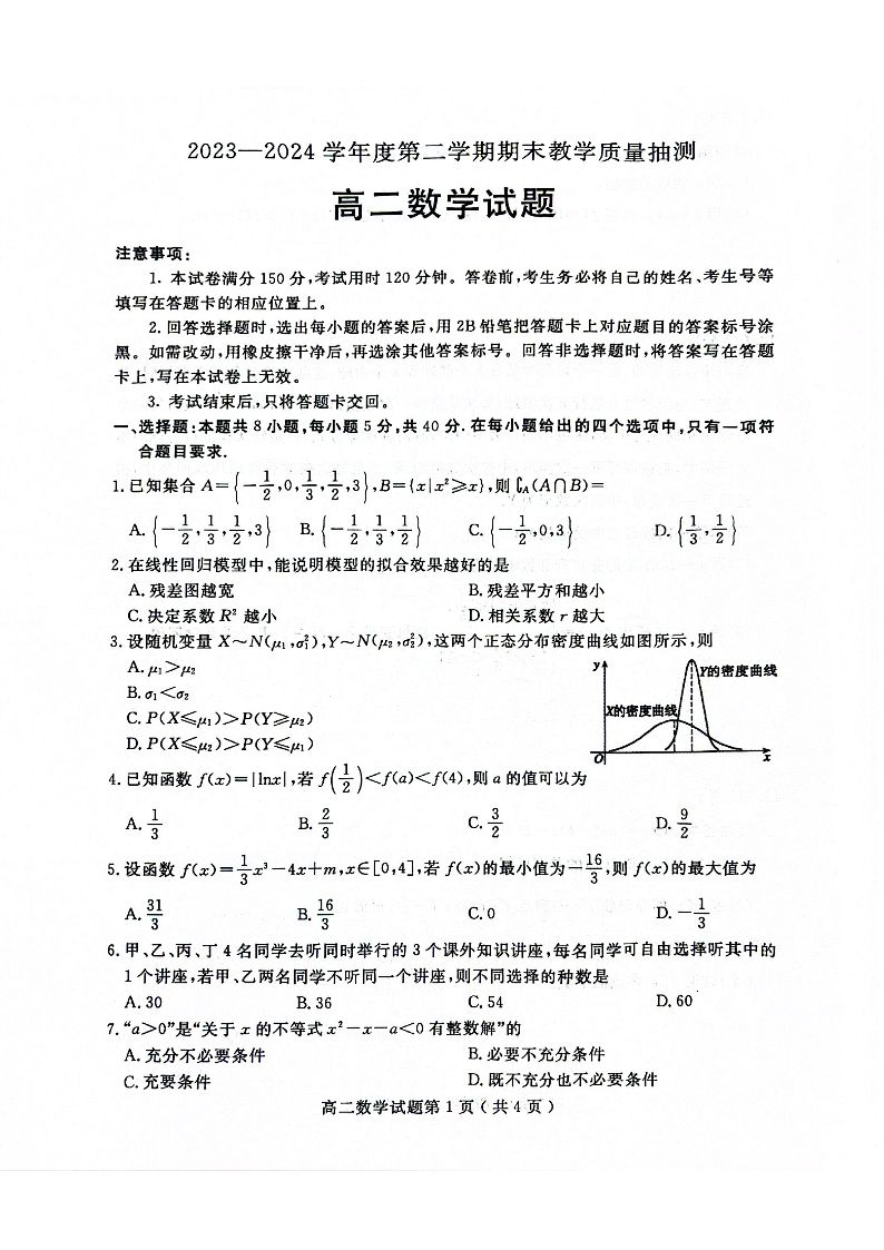 山东省聊城市2023-2024学年高二下学期期末教学质量抽测考试 数学