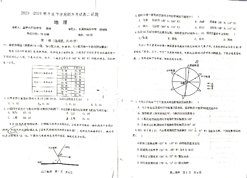 辽宁省协作体2023-2024学年高二下学期7月期末考试 地理