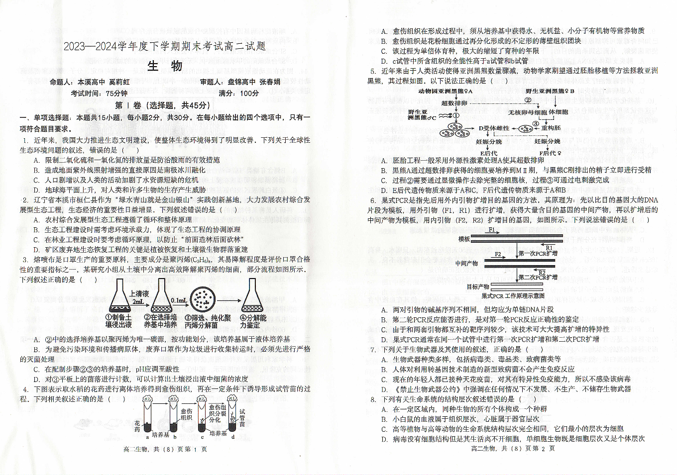 辽宁省协作体2023-2024学年高二下学期7月期末考试 生物