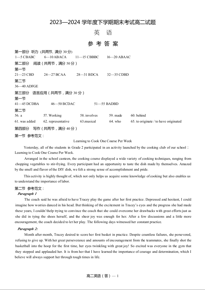 辽宁省协作体2023-2024学年高二下学期7月期末考试 英语答案