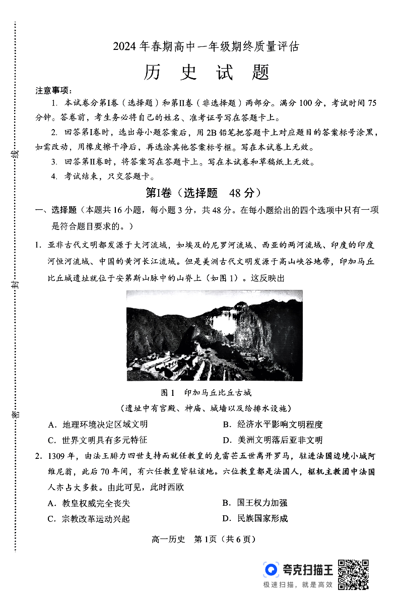 河南省南阳市2023-2024学年高一下学期期终质量评估 历史