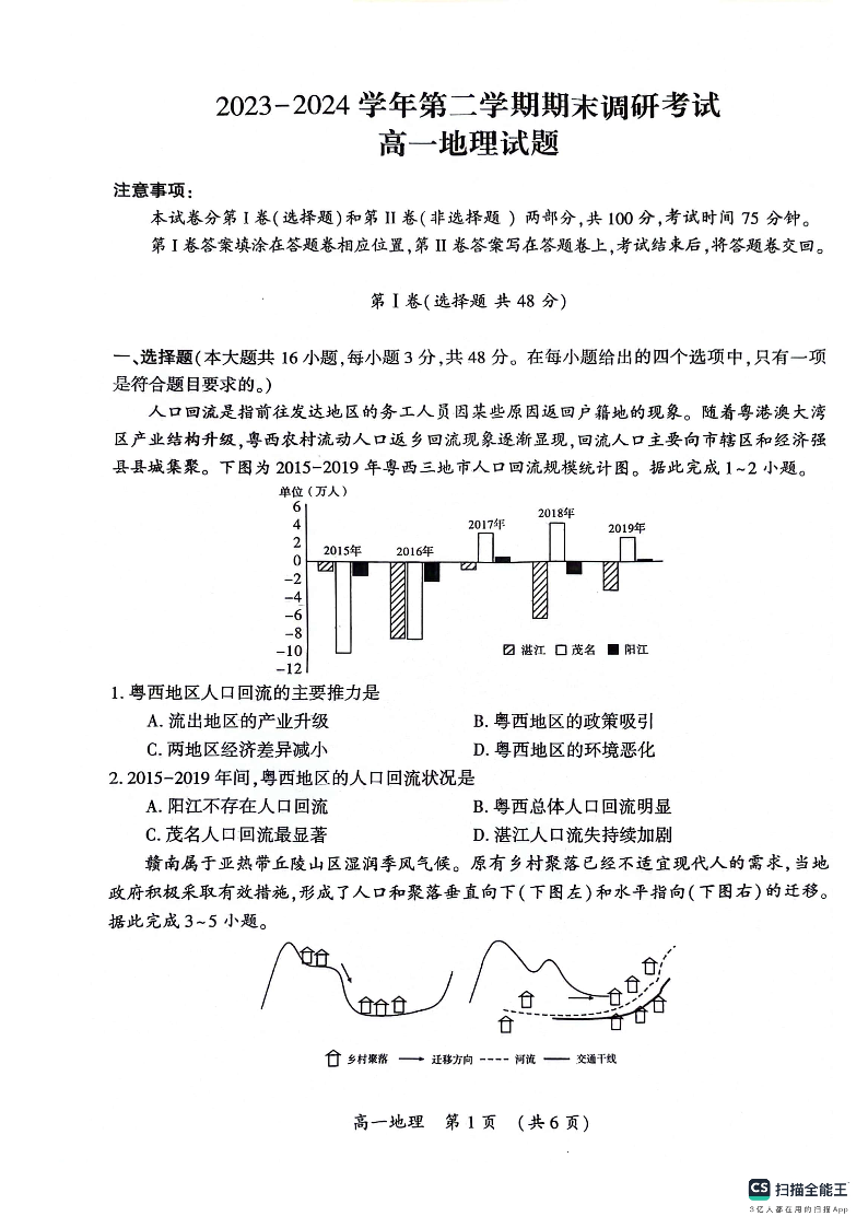 河南省开封市2023-2024学年高一下学期期末调研考试 地理