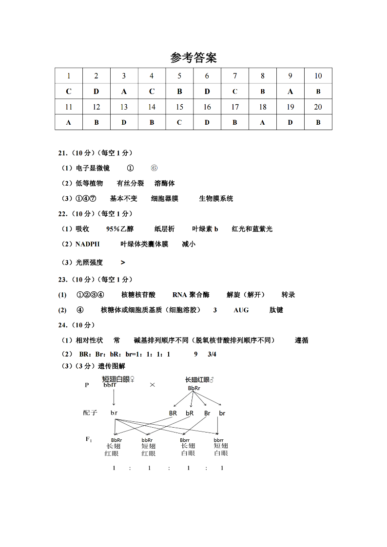 宁波慈溪市2023-2024学年高一第二学期期末测试 生物答案