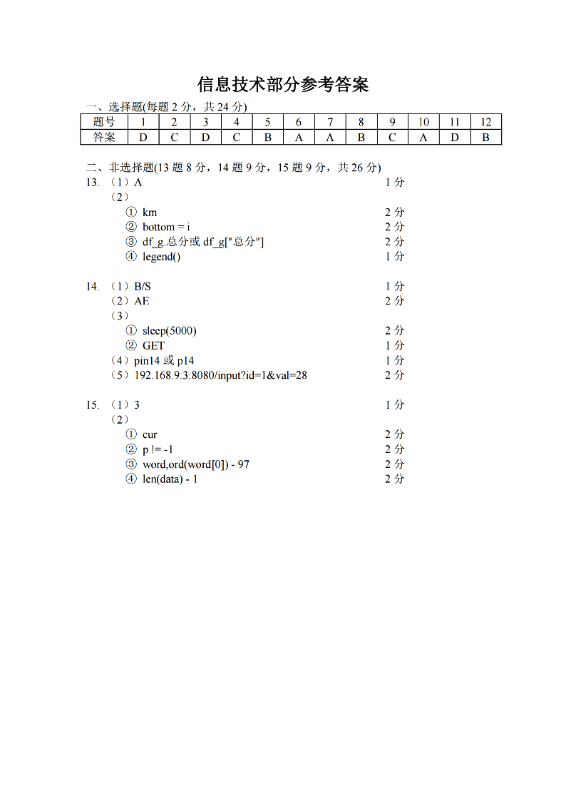 舟山市2023-2024学年高二第二学期期末检测 技术答案