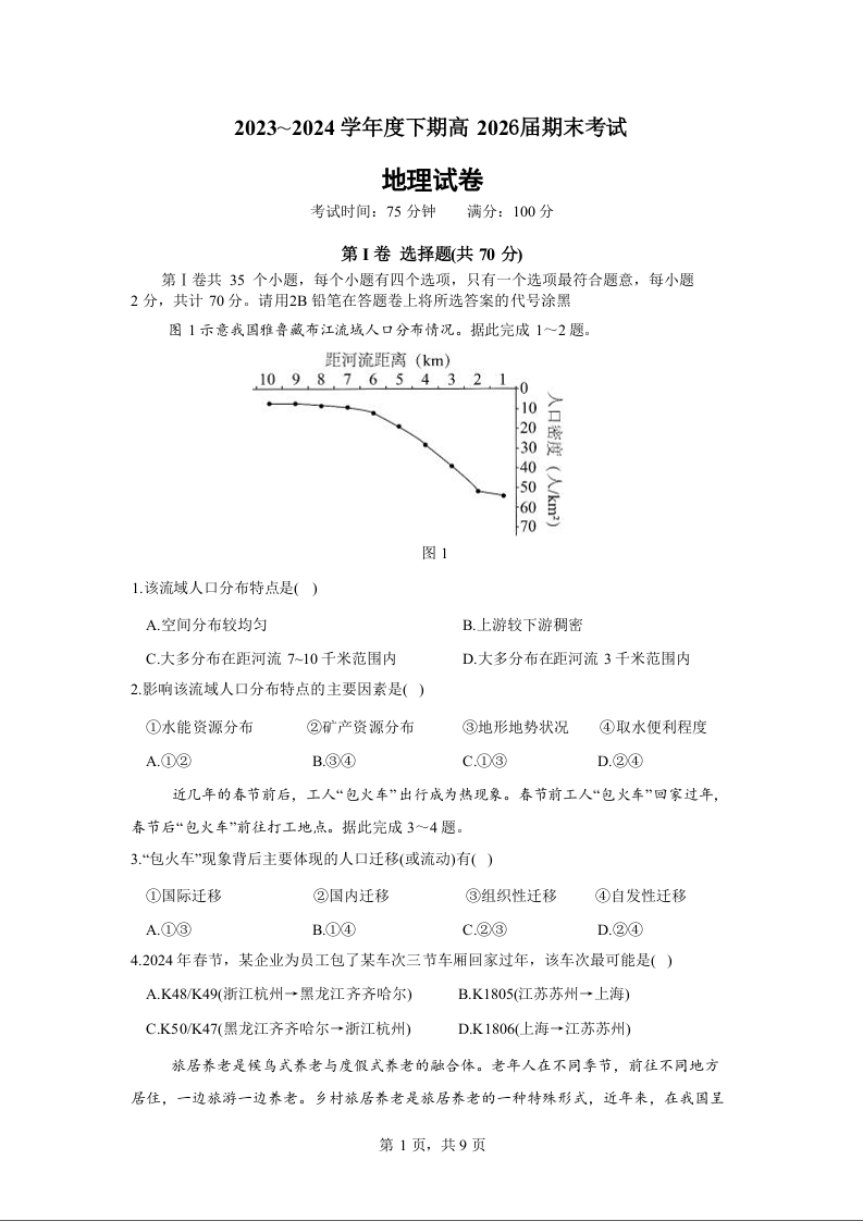 四川省成都市第七中学2023-2024学年高一下学期高2026届期末考试 地理