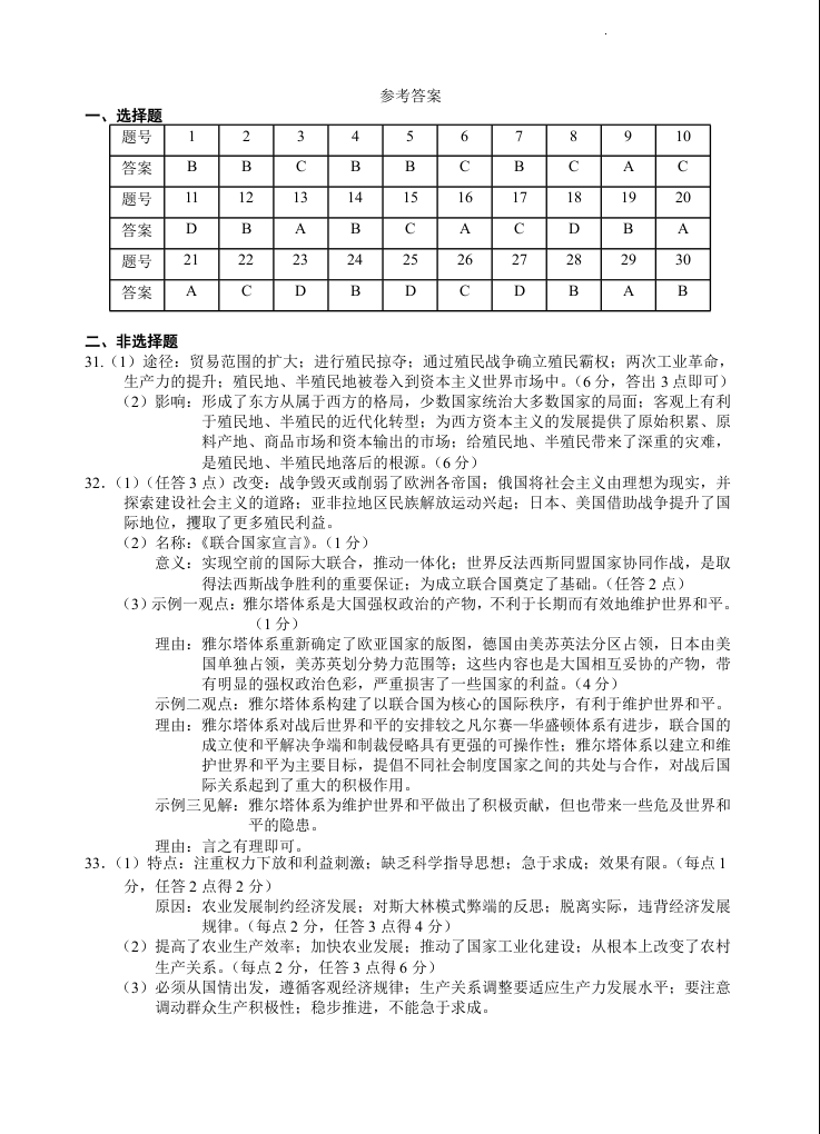 宁夏回族自治区银川一中2023-2024学年高一下学期期末考试 历史答案