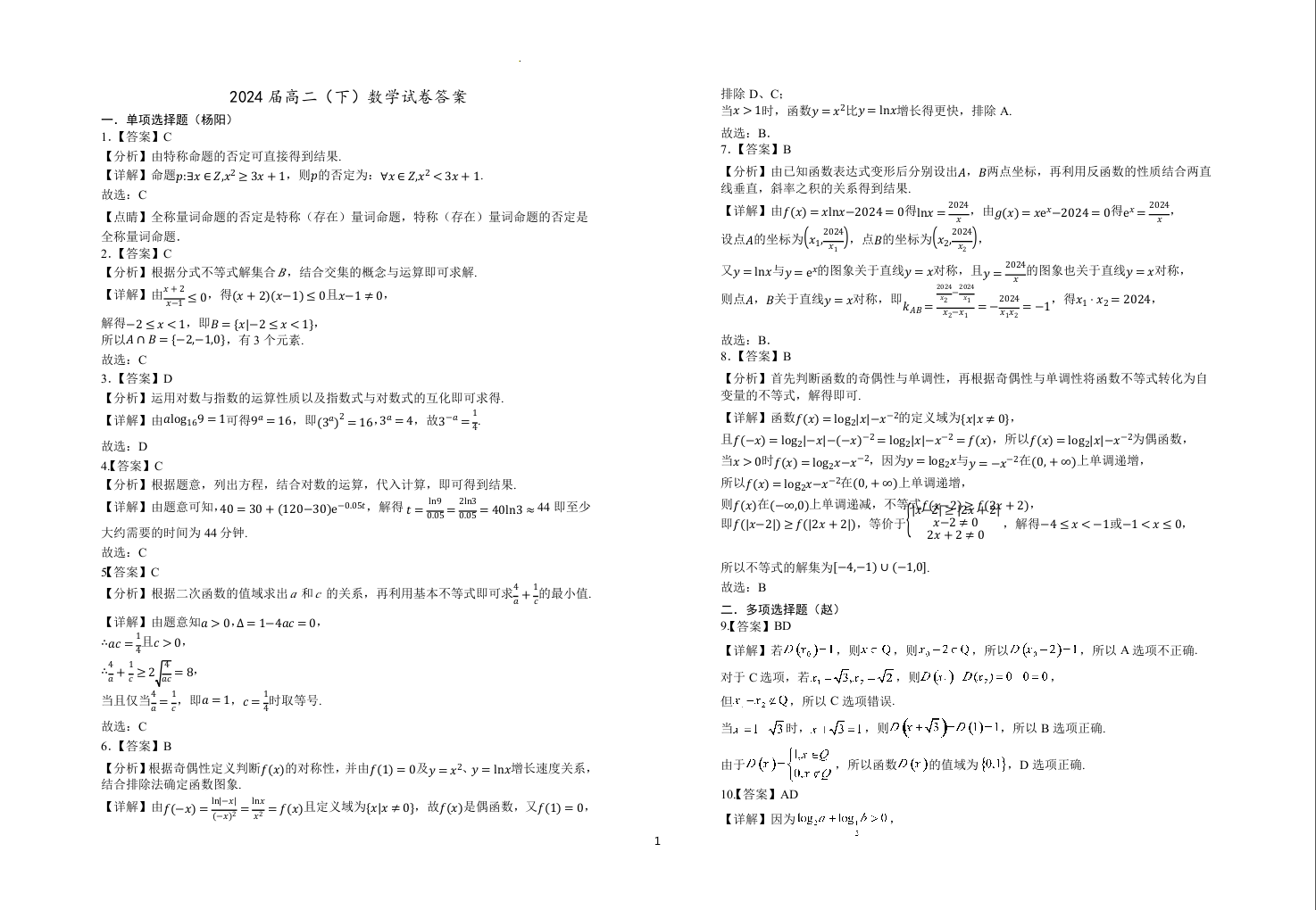 宁夏回族自治区银川一中2023-2024学年高二下学期期末考试 数学答案