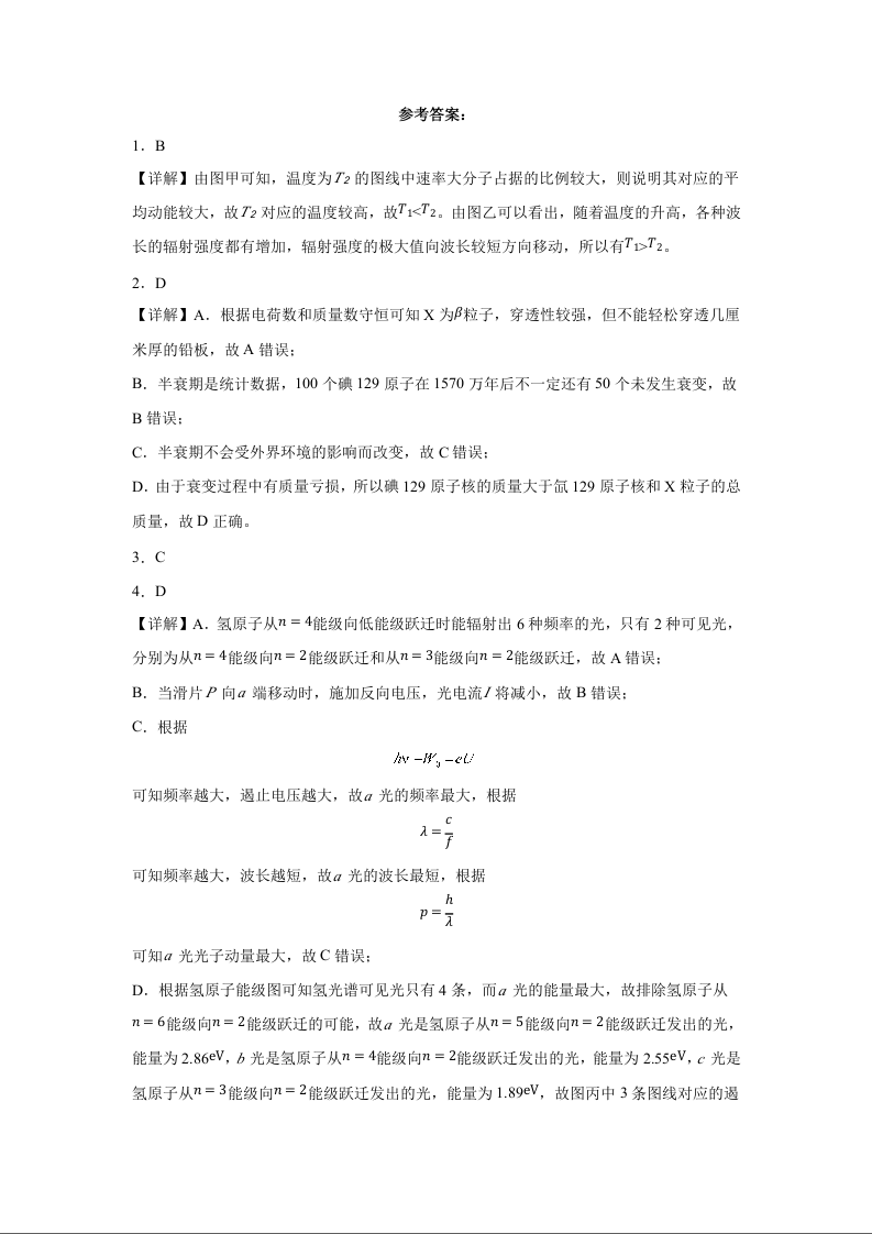 武汉外国语学校2023-2024学年度高二下学期期末考试 物理答案