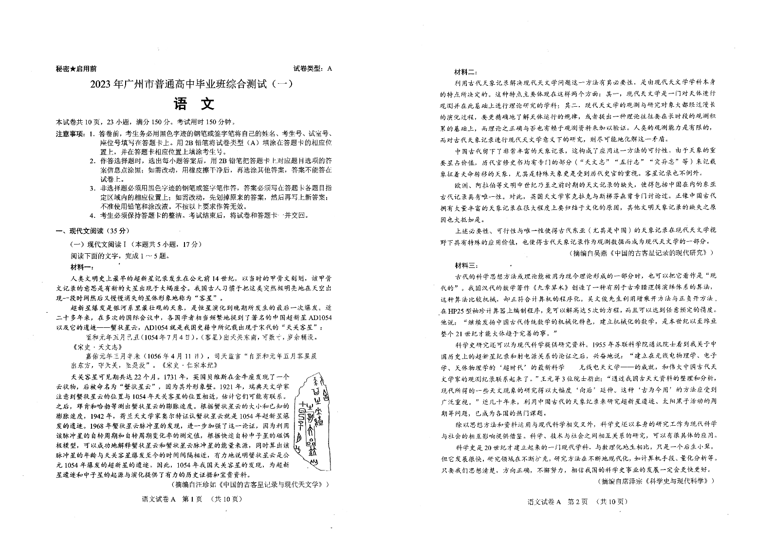 【广东卷】2023年广州市普通高中毕业班综合测试(一)语文试题