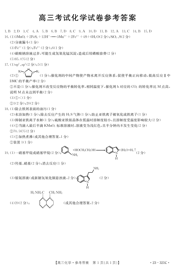 2023届辽宁省县级重点高中联合体高三(一模)丨化学答案