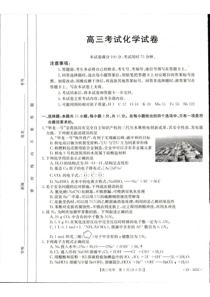 2023届辽宁省县级重点高中联合体高三(一模)丨化学
