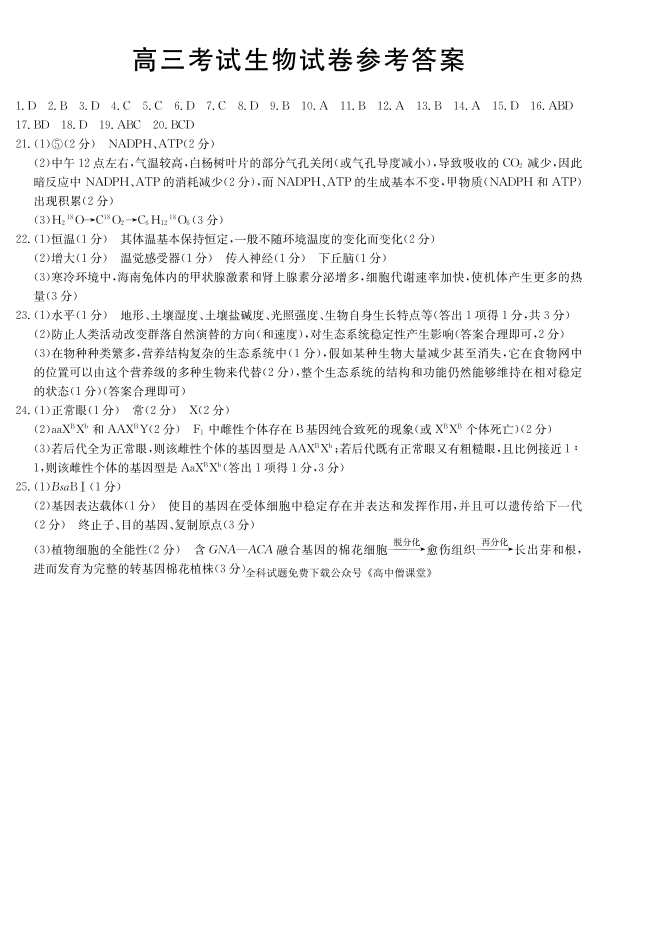 2023届辽宁省县级重点高中联合体高三(一模)丨生物答案