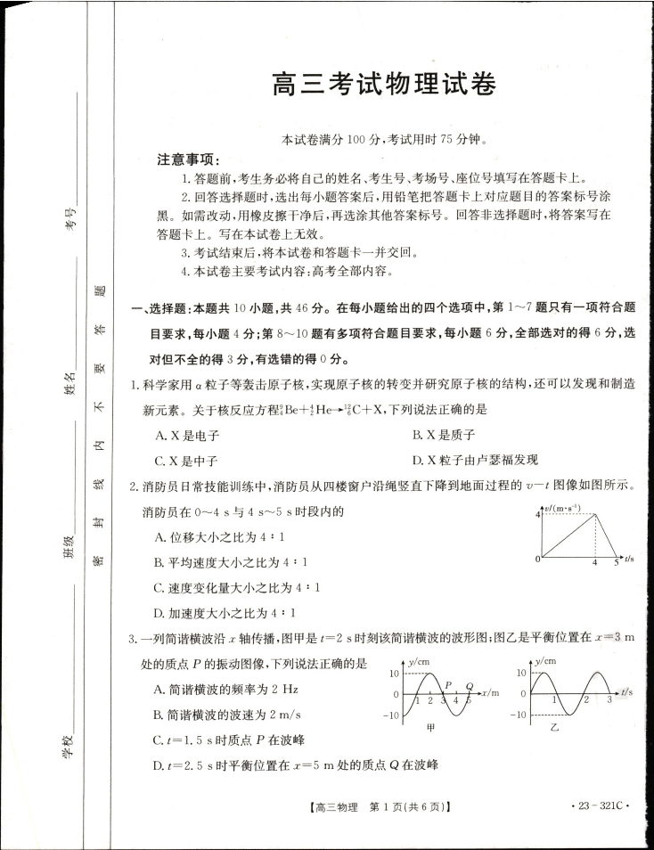 2023届辽宁省县级重点高中联合体高三(一模)丨物理