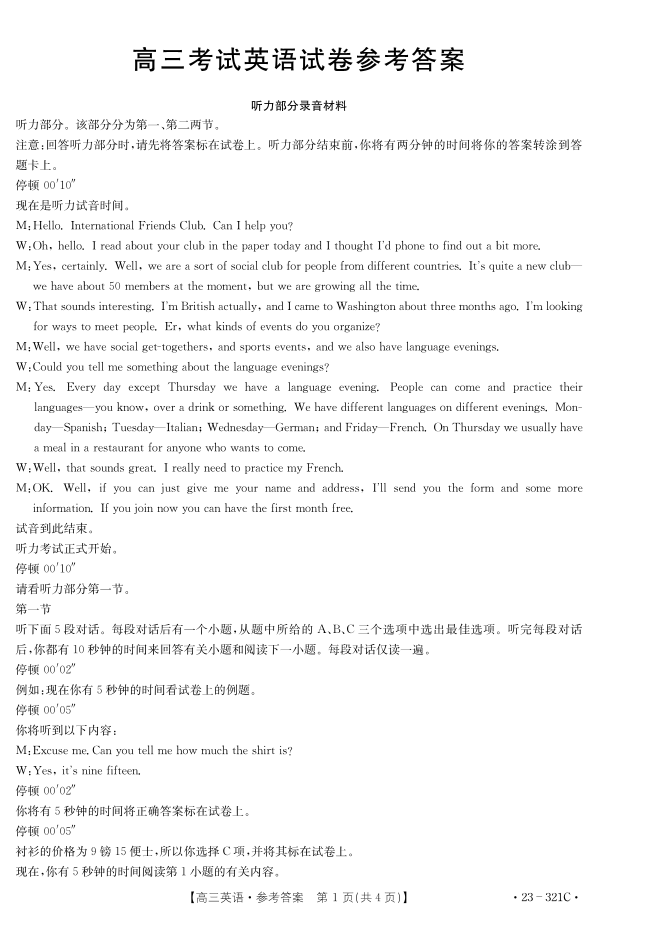 2023届辽宁省县级重点高中联合体高三(一模)丨英语答案